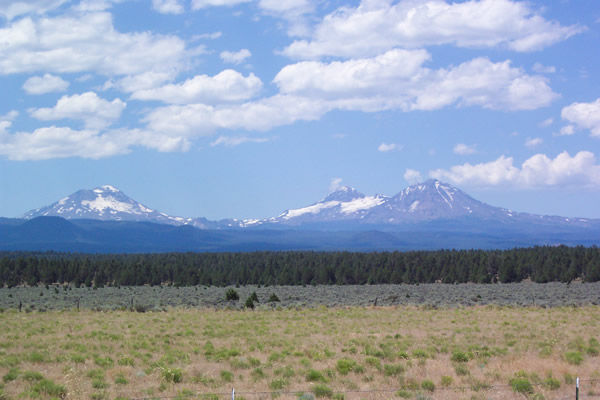 Stopping outside of Sisters, Oregon, along the side the highway at a roadside park, Michael took this picture of the Three Sisters. Soon, we would be backpacking our way around the West side of them.